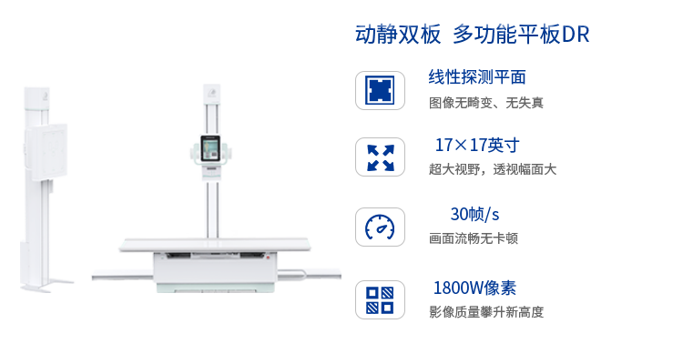 PLD7900多功能動(dòng)態(tài)DR雙板系列配備一動(dòng)一靜兩塊平板探測(cè)器,靜態(tài)攝影時(shí)使用靜態(tài)板,動(dòng)態(tài)檢查時(shí)使用動(dòng)態(tài)板,專板專用,高效專業(yè),全面滿足攝影、透視、造影等多種臨床檢查需求。